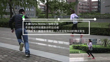 使用Osmo Mbile进行运动过程中的拍摄,画面仅轻微抖动,体现了强大的稳定性。而轻微抖动是因为外部高频震动通过身体传递到苹果Plus和7系列手机自带的OIS模组仍会产生轻微晃动,但拍摄时使用平缓步伐行走或慢跑可以大副减少画面震动,使用其他手机不会存在该问题。