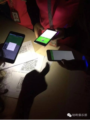 图为跑友拿出手机下载咕咚并加入企业俱乐部