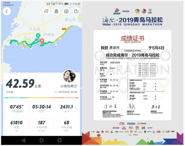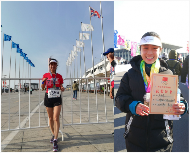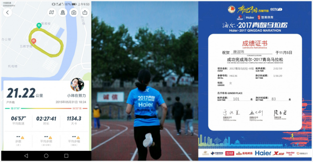 所以,在跑过10几公里后,没有经验的我在操场上刷了第一个半马。因为没有渠道,也不知道如何参加,本科学校所在的雅安还不会举办相关的比赛,马拉松还没有像现在这么多,所以在跑步3年后,2017年我才在青岛参加了我的第一个线下半程马拉松,而且那次,我还以156的成绩完赛。