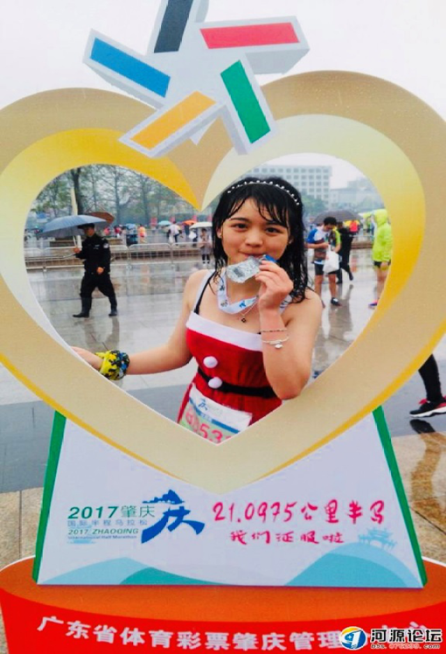 跑步最初的原因是想着减肥。那时,我加入了一个跑团“河源乐跑团”,他们每个星期天都会组织跑步活动。刚开始,跟着他们跑步有点受不了,因为他们跑得比较快。我是新手,几乎每次都被他们拉爆,——我想这应该是每个跑者都会经历的过程吧。虽然跑的过程中受过不少伤,但是我并没有放弃。