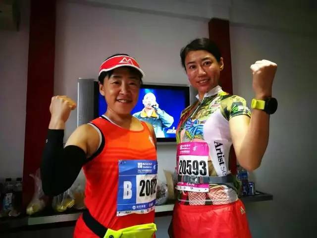 整个赛程,他一直贴心的控制我的速度,各个时段贴心的为我拿补给,提醒我吃自己的私补,为了不影响我的节奏,还冲刺跑在阳明滩大桥上届我拍照留念的地方给我拍照留念。为了怕我最后两公里想提速出意外状况,他甚至欺骗我无法在430以内完赛,让我在最后阶段完全放松了心态放松冲过终点。有了他的提醒控制和陪伴,第一次跑全马的我竟然没有体验到”撞墙”,38公里鬼门关时,虽然很疲惫,可也没有感受到别人说的”要死的心”那种感觉。看完赛后的通知短信,我竟然一分不差的430完赛了!这个成绩就是放在第一次跑全马的男跑友身上都算说的过去的成绩,何况是我这个五十周岁的”高龄”女跑妇。