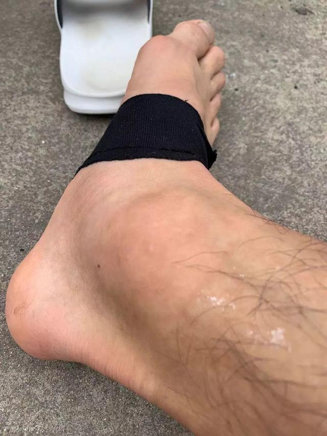 2019年10月28日,上马前三周,TNF100沈阳越野赛,左脚踝扭伤,右脚踝肿胀。