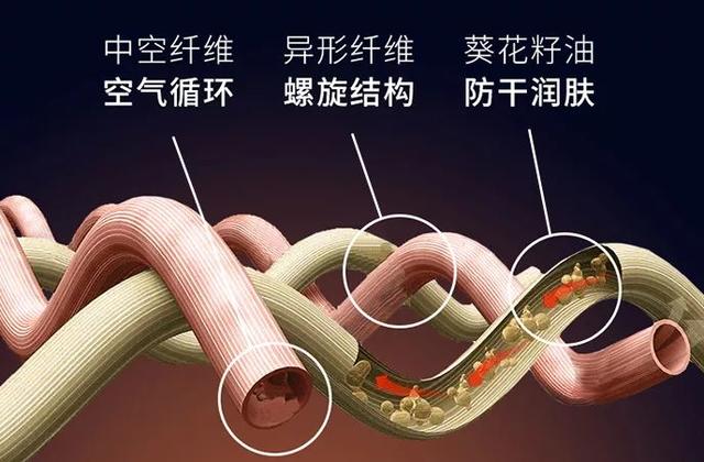 一部分中空纤维隔绝冷气,另一部分中空纤维中添加了葵花籽油,防干润肤。