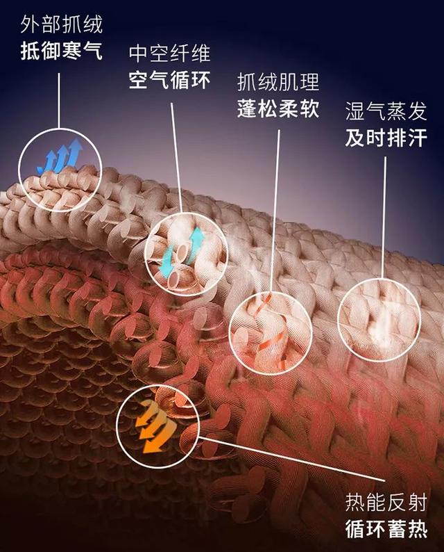 这些纤维编织在一起,将身体的热气与外部的冷空气隔绝,让温度牢牢锁在身上。