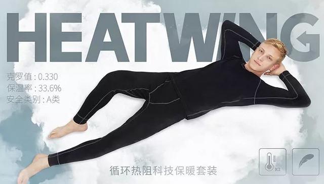 这样从内到外的保暖措施,保暖的效果也是十分显著,在普通保暖内衣克罗值(描述服装或织物隔热保暖性能即“热阻”的工程单位)为0.13clo的时候,HEATWING循环热阻内衣达到了0.33clo。