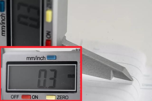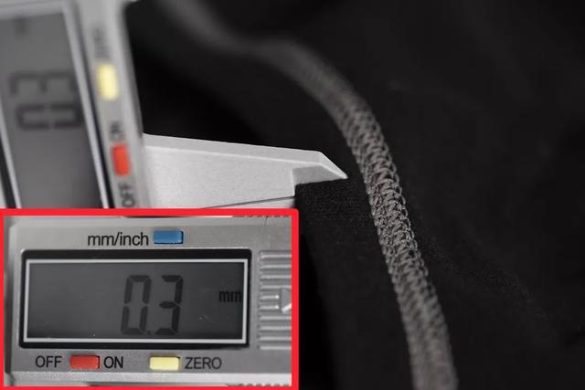 我们又测了5张纸的厚度,这衣服和张纸的厚度一样,都是0.3mm,也太薄了。