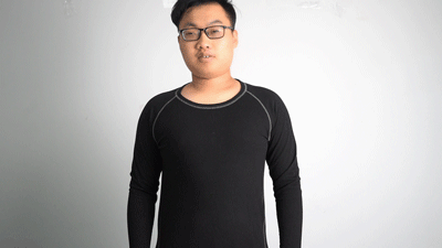 我们做了个测试,小哥哥穿在身上,看着挺修身的了,我使劲拽还能拽特别长,松手以后衣服也没有变形。