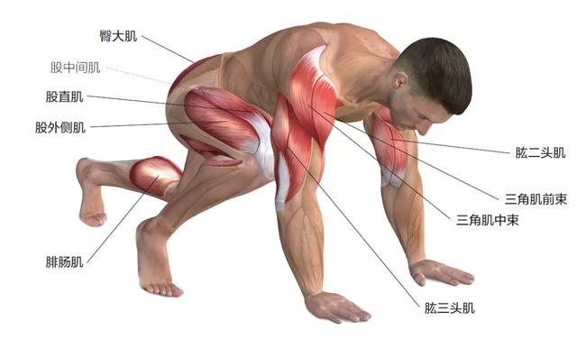 做登山运动时,会挑战到你的三头肌、肩膀、核心部位、臀部、大腿等肌群,几乎身上所有部位都有涉及,可以说是全身性训练。