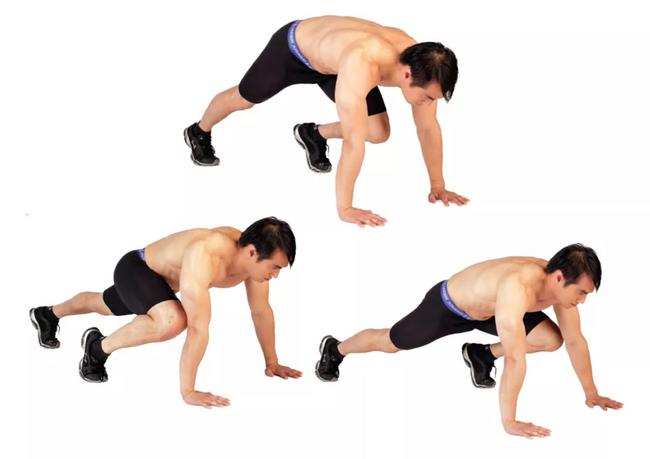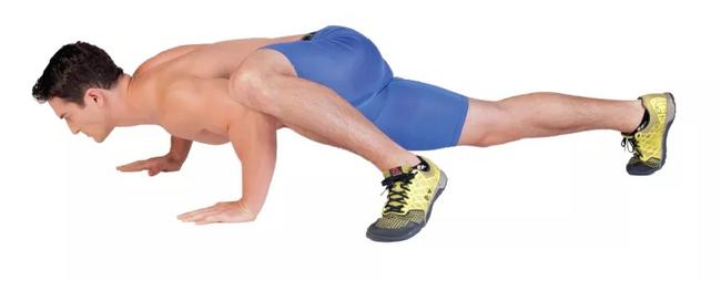 做低位平板支撑,肩部在手肘正上方。弯曲一条腿,将膝盖靠近同边的肩部,越近越好。将腿放回原处,换侧重复动作。