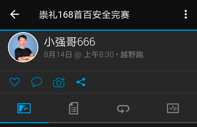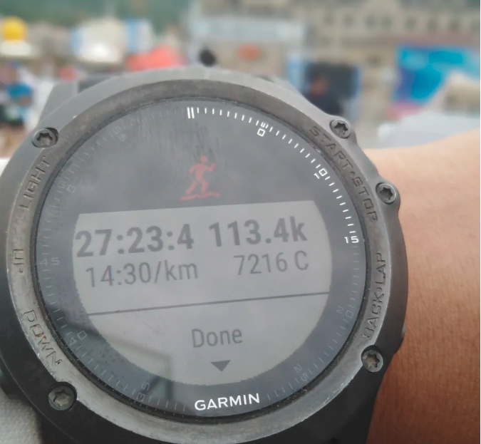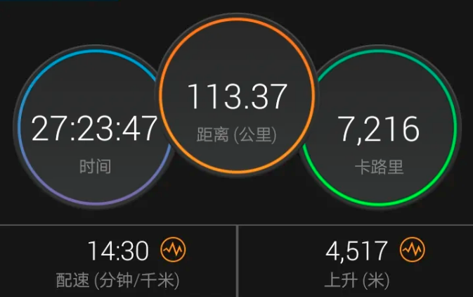 天,还是太热了。我坐在这个按摩椅上休息的时候,开始拿出手机和朋友们聊天。大家都在群里给我加油,叫我要安全完赛,郭哥和小浪马上及时提醒我不要在补给站停留太久,让自己一直保持在运动状态。在大家的鼓励下,我又鼓起勇气继续出发了。真的,天气这么热,到这里我感觉自己有点泄气了,虽然还没有决定放弃。从CP3出站时,刚好33KM,才三分之一。鉴于今天天气情况和自己今年本来训练备战就不足,体能还比不上去年,所以从CP3出站时,我就已经把目标调整成安全完赛,这次比赛不再追求成绩了。目标改变后,接下来的心态和策略也变了。
