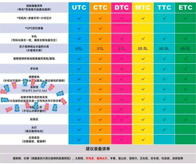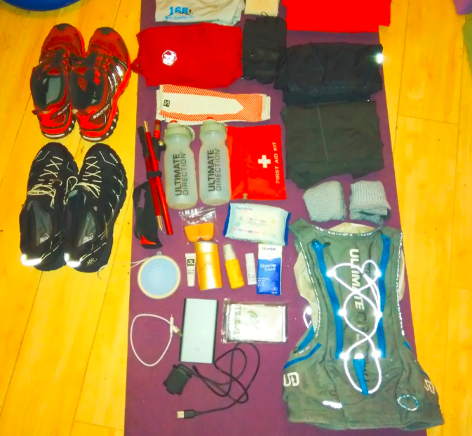 出发前一天晚上,把强装一一叠好,整齐摆放在瑜伽垫上,拿着手机对着强装清单图片非常认真的过了一遍又一遍,然后装包!特别把要放在换装点的中转包单独拿了一个跑马拉松的那种跑步背包装好,把随身携带的装备都装在UD背包里,其他的东西单独装在一个挎包里。分类装好,心里略安,激动又兴奋,都快到夜里12点了,发了个朋友圈,上床睡觉。