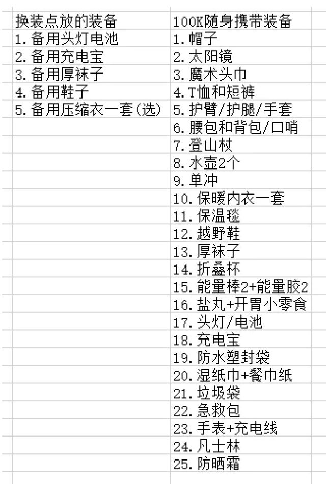 备赛期间,对照官方强制装备清单,我小心翼翼的用Excel表格做了一个自己的强装列表,如下: