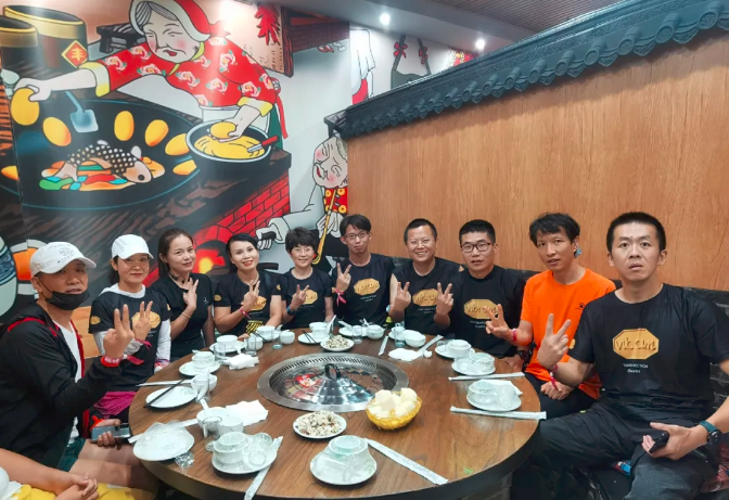 晚上V战队聚餐,大家轮流介绍自己,有征战过UTMB/四姑娘山的大神,有多次参加百公里越野的老司机,有全世界征战6大马的跑步达人,也有像我一样首百选手,大家聊的很开心,吃的也很饱。跑步我们是认真的,新老朋友见面聚餐吃喝就像开一个大Party一样欢聚,这才是我们全国各地来参加崇礼168这种大比赛的本质,尤其在2020年这样的疫情新常态下。