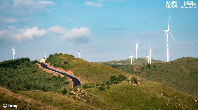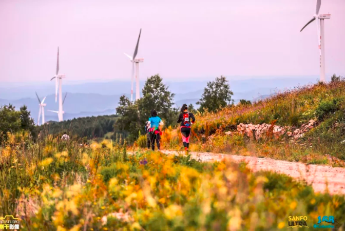 从CP2出站后,开始一段上坡,在上坡过程中,偶遇一个漂亮的小姐姐,也是从北京来的,于是我们搭伴一起,边走边聊。这个小姐姐说她去年也是报了100公里,但是因为扭伤了脚,在CP4退赛了,今年是来复仇的。去年我跑的是70公里,不到14个小时完赛。还挺有共同话题的,从去年的赛事聊到北京的三峰拉练。我说我今年去三峰去的很少,只去了一次,一个人跑一圈半,拉了一个长距离了。她说她也是在三峰拉的一个长距离,不过比我还多个半圈,凑了个50公里的长距离,11个小时跑完,也是一个人跑的,真厉害,我太佩服了!这来崇礼跑100公里的小姐姐真是没有一个是怂货呀!