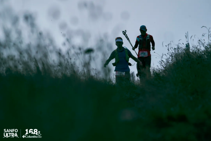 在山顶上,暴雨不期而至,我们穿着单冲,戴着头灯,冒雨下坡,奔向CP7补给站,蒙走在我前面,偶尔踩到石头或草,就会滑一下,我们一路小心翼翼的下坡,只希望雨能早点停,或者早点到CP7补给站。在路上,米宝和蒙已经在讨论退赛的问题了。米宝说自己的伤已经不能支持完赛了,她已经考虑好了,到CP7就退赛,让蒙再好好考虑一下,蒙还要再纠结一下。一路上慢慢挪到CP7。