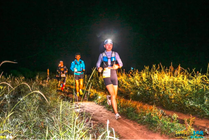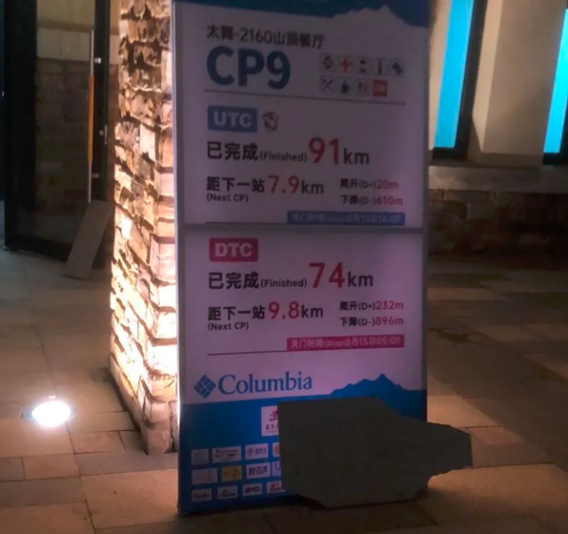 在接下来的行程里,一路上坡,第一个上坡,擅长跑坡的小白压着速度带着我们这支小分队继续前进。经过CP6后,在一个下坡上我们慢跑起来,跑到坡底后,继续下一段上坡时,小白就起飞了,上坡时我们根本看不到他的尾灯(小白今天也是出了状况,肠胃问题吧,他起飞后发来微信说他怕自己退赛,先走了),直到下半夜,我们在太舞山顶餐厅CP9再次遇到小白,他已经在CP9睡了2-3个小时,虽然这次比赛出状况了,不过好在最终安全完赛,没有退赛。