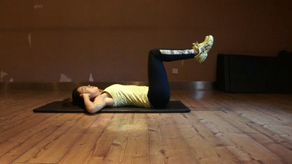 动作二:仰卧屈腿举腿卷腹 每组建议次数30