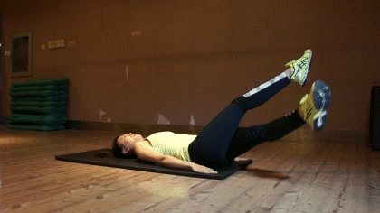 动作四:仰卧支腿举腿够脚踝 每组建议次数30