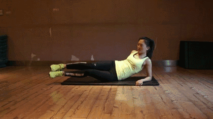 动作十一:侧卧起身蜷腿 每组建议次数20(每侧)