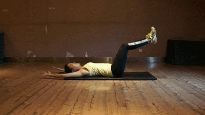 动作六:仰卧举腿交叉横摆 每组建议次数50